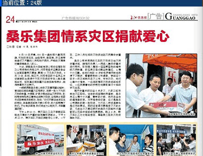 長江信息報:桑樂集團情系災(zāi)區(qū)捐獻(xiàn)愛心