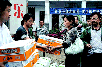 萬元救災(zāi)物資送到給災(zāi)民手中。桑樂員工冒雨運送賑災(zāi)物資,讓相思鄉(xiāng)黨委書記陳君輝深受感動,他說: