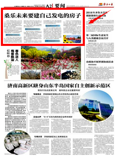 在光伏領(lǐng)域,桑樂已擁有十余年技術(shù)積累,并在全國推廣超百兆的分布式光伏電站。目前又計劃引進美國第三代有機電池薄膜產(chǎn)品, 與國內(nèi)第二代光伏產(chǎn)品相比,對環(huán)境無毒無害,推廣價值巨大。此外,桑樂憑借掌握的四十多項專利成果,為打造“綠能全空間”生態(tài)環(huán)境,提供整體的支持。山東省減災中心泉城公園項目被稱為山東省第一批超低能耗示范建筑,就是綜合運用了太陽能空調(diào)、空氣源熱泵 、光伏電池、太陽能集熱器等新能源最新技術(shù),也就是濟南人口中的“被動房”。