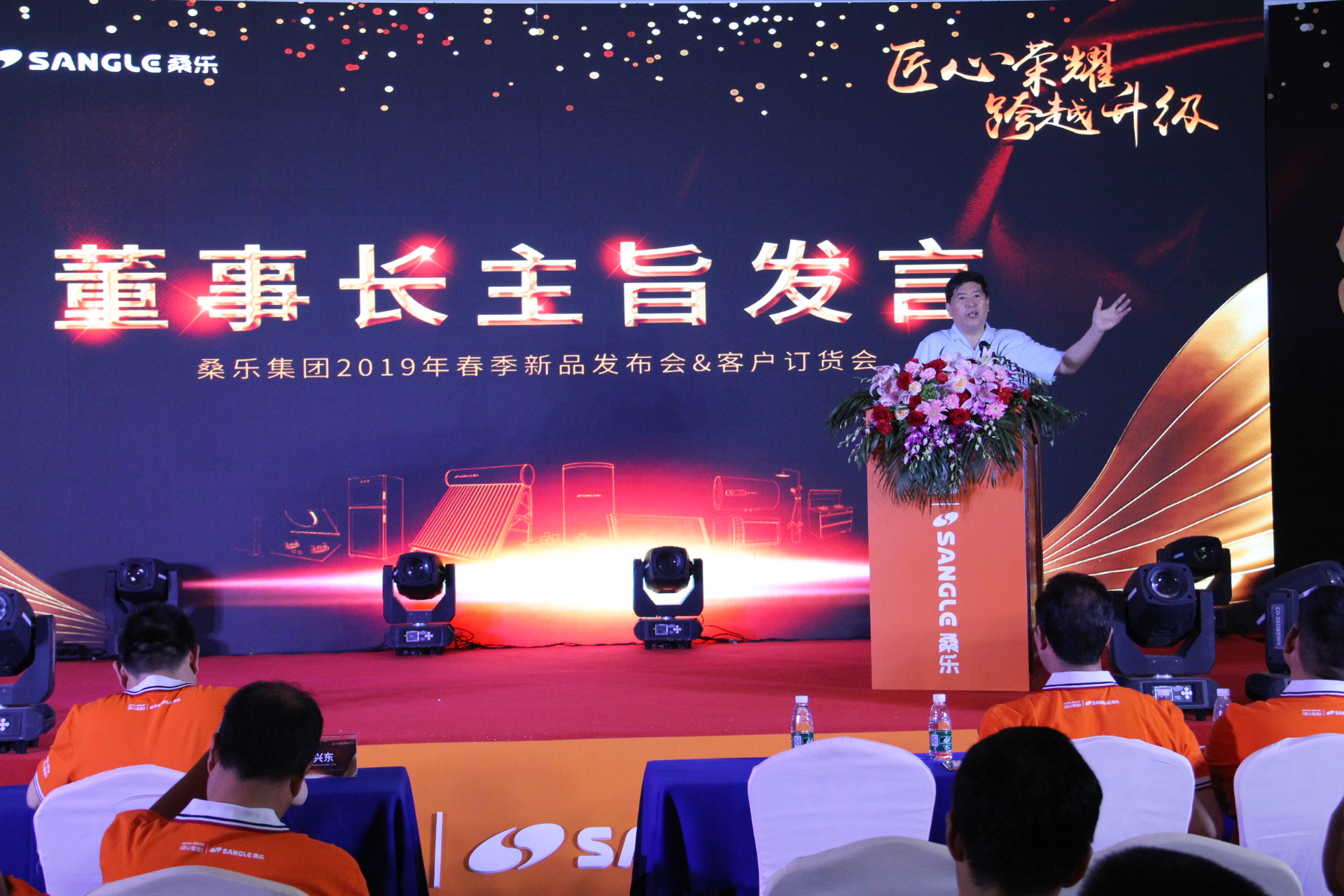 董事長關(guān)于桑樂品牌升級(jí)戰(zhàn)略和共創(chuàng)財(cái)富新時(shí)代的發(fā)言受到了全體桑樂家人們的一致贊同和掌聲。
