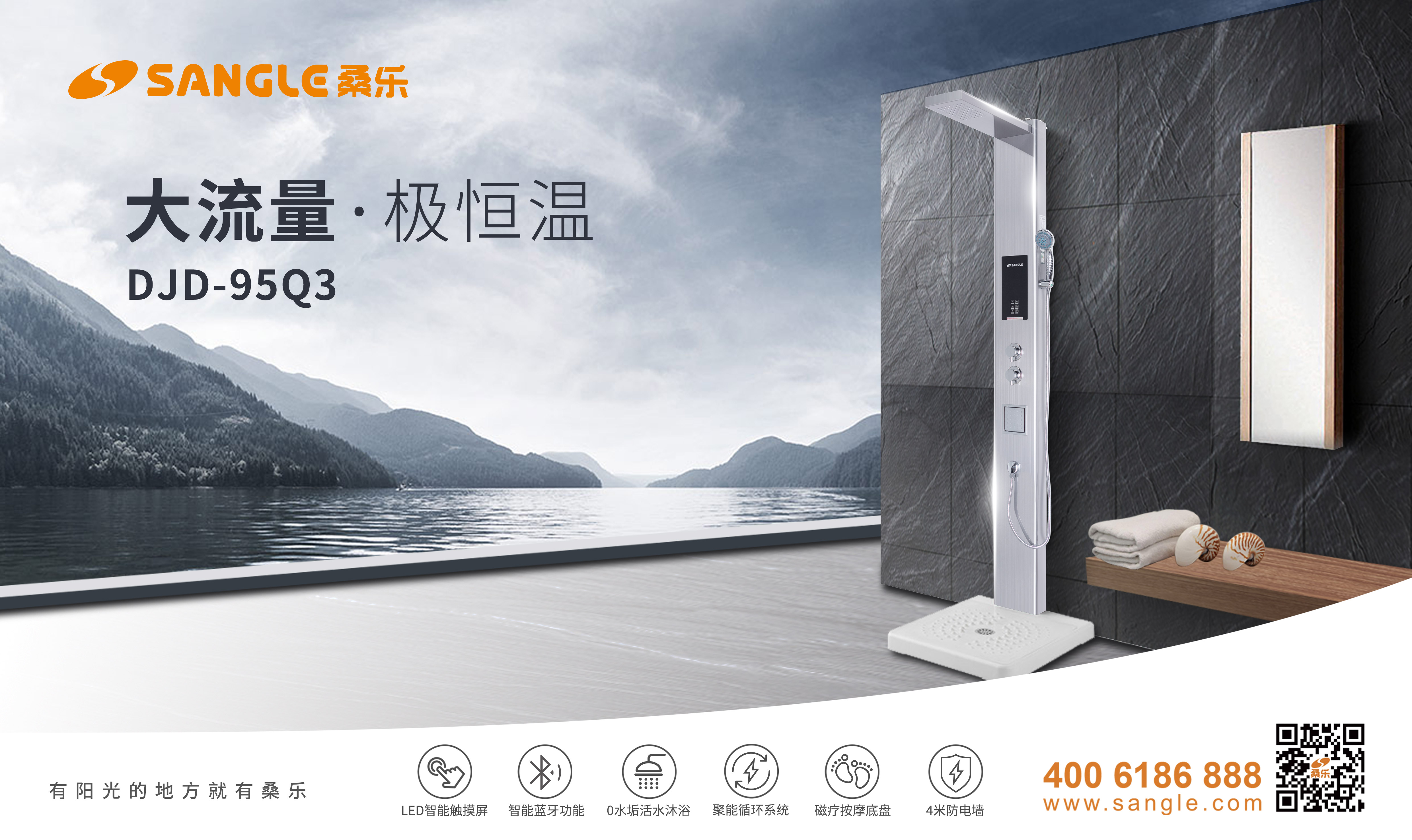 桑樂集團(tuán)2019年春季新品集成式熱水器,將創(chuàng)新技術(shù)與舒適體驗(yàn)完美結(jié)合,特來幫您解決這個(gè)難題。其中以DJD-95Q3為例,這款產(chǎn)品因?yàn)闆]有傳統(tǒng)熱水器的儲(chǔ)水容器,機(jī)身只有22cm,極大的縮減了占地面積,只要一個(gè)淋浴的地方足矣,而且整機(jī)采用SUS304不銹鋼一體拉伸,盡顯奢華時(shí)尚浴室。當(dāng)然作為一款熱水器最重要的還是其實(shí)用性,這款產(chǎn)品因內(nèi)膽容量小、預(yù)熱時(shí)間短,所以沒有長時(shí)間預(yù)熱而導(dǎo)致的熱能量散失,即開即用的同時(shí)避免了能源浪費(fèi),真正做到了節(jié)能、省電、省水,這也是被眾多消費(fèi)者選擇的主要原因。同時(shí)它還采用了ECO高頻振蕩導(dǎo)熱技術(shù),在振蕩過程中消除水垢,實(shí)現(xiàn)無水垢環(huán)保運(yùn)行,保障熱效率持續(xù)穩(wěn)定不衰減。除此之外該產(chǎn)品還支持多種出水模式,頂噴SPA、瀑布SPA、手持花灑、側(cè)噴SPA隨意切換,只愿做您家里的免費(fèi)按摩師,單獨(dú)配備的磁療按摩底盤,更是讓用戶在沐浴的同時(shí)刺激足部穴位反射點(diǎn),對(duì)全身器官的反射穴位進(jìn)行磁療按摩,無疑是養(yǎng)生沐浴之首選。