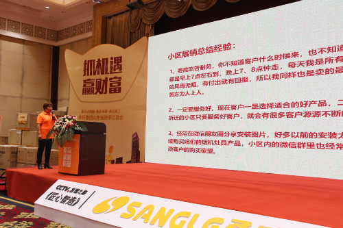 桑樂(lè)集團(tuán)副總經(jīng)理張興東在營(yíng)銷主題報(bào)告中強(qiáng)調(diào),希望大家緊跟集團(tuán)步伐,響應(yīng)公司政策,積極上樣,以新店、新產(chǎn)品、新氣象,乘著桑樂(lè)新東風(fēng),抓機(jī)遇、贏財(cái)富。張總的報(bào)告激起了現(xiàn)場(chǎng)經(jīng)銷商家人們的陣陣掌聲。