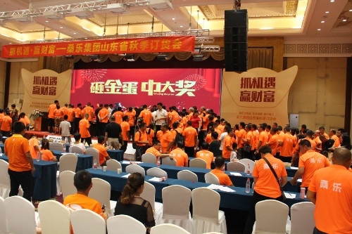隨著砸金蛋活動(dòng)的開始,會(huì)議現(xiàn)場(chǎng)再次人潮涌動(dòng)高潮迭起。本次會(huì)議捷報(bào)頻傳,現(xiàn)場(chǎng)氣氛熱烈,再次刷新山東省秋季訂貨會(huì)打款記錄,全體山東桑樂(lè)人眾志成城,把握機(jī)遇,共同向年度沖刺目標(biāo)發(fā)起全力沖鋒。