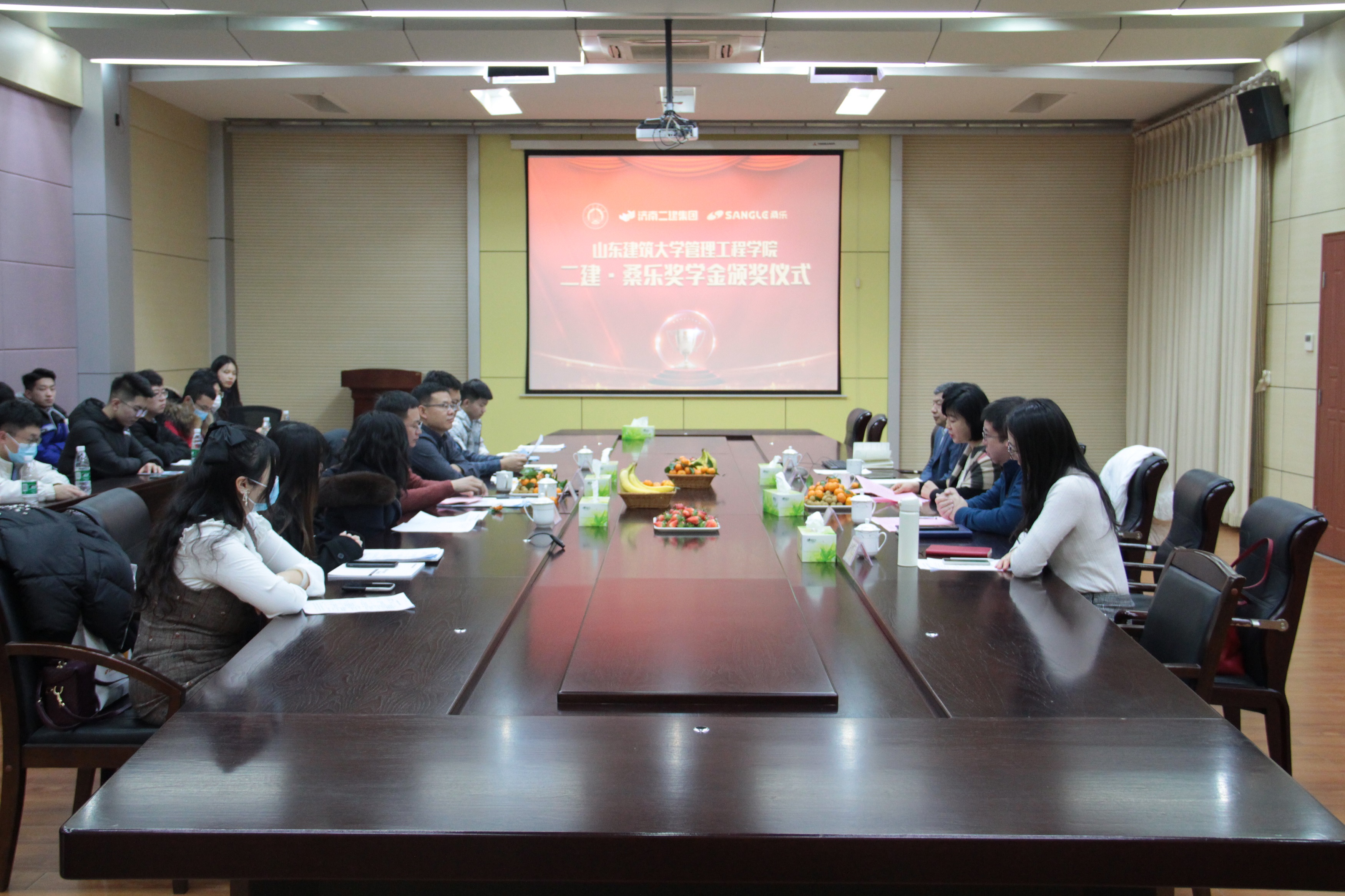 12月24日,濟(jì)南二建集團(tuán)、山東桑樂集團(tuán)資助山東建筑大學(xué)管理工程學(xué)院優(yōu)秀學(xué)生獎學(xué)金頒獎儀式在桑樂集團(tuán)總部舉行。山東建筑大學(xué)管理工程學(xué)院院長王德東、團(tuán)委書記張之穩(wěn)以及建大教師、學(xué)生30余名參加儀式。二建集團(tuán)黨委書記、副董事長、桑樂集團(tuán)董事楊瑩、濟(jì)南二建集團(tuán)副總經(jīng)理吳永平、桑樂集團(tuán)常務(wù)副總馮磊等集團(tuán)領(lǐng)導(dǎo)接待參會。