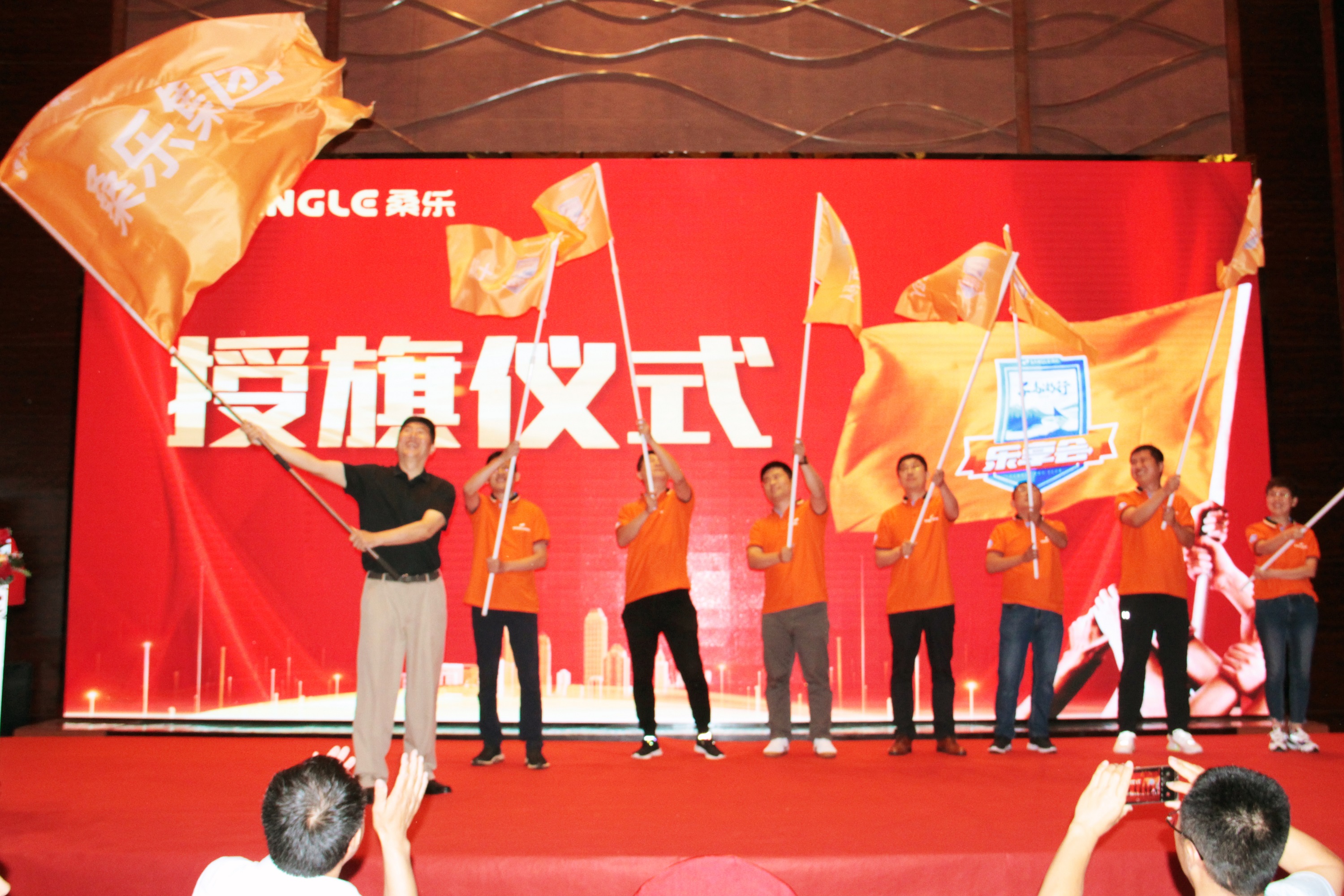 隨后,晚宴上進(jìn)行了樂享會授旗儀式。董事長高舉桑樂大旗,大家一起揮舞旗幟,吹響了桑樂新時代沖鋒的號角。每一位桑樂人都斗志高昂,信心十足,力爭讓桑樂的旗幟在全國各地飄揚。