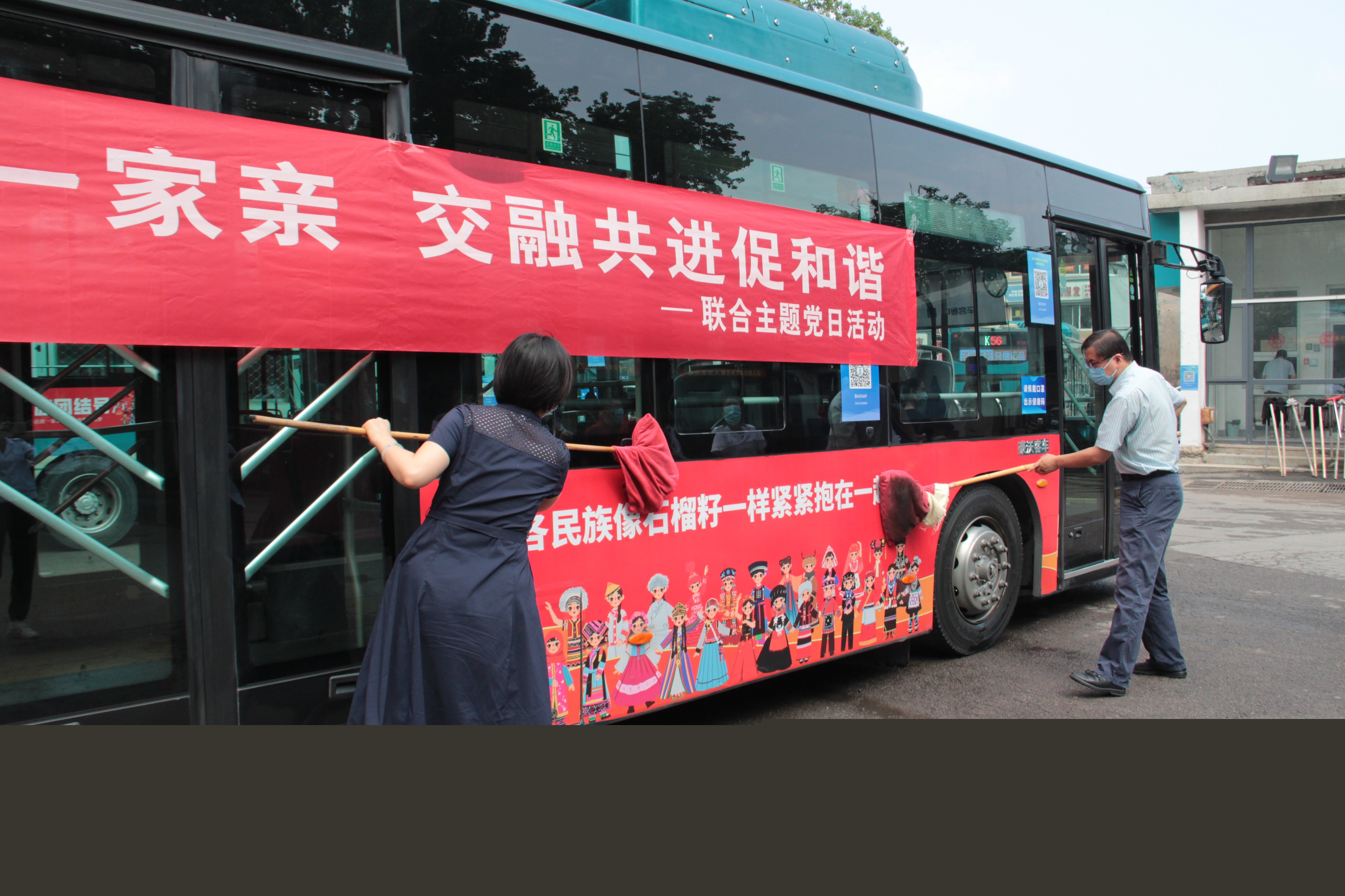 為進(jìn)一步開展民族團(tuán)結(jié)進(jìn)步宣傳活動(dòng),黨員代表們一同在車輛始發(fā)站點(diǎn)為乘車市民贈(zèng)送“民族團(tuán)結(jié)一家親 同心共筑中國(guó)夢(mèng)”宣傳品,將鑄牢中華民族共同體意識(shí)和民族團(tuán)結(jié)進(jìn)步理念融入群眾日常生活中。